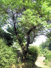 圃場の横にあるモモの木です。 下の通路はモモの種でいっぱいです。 |